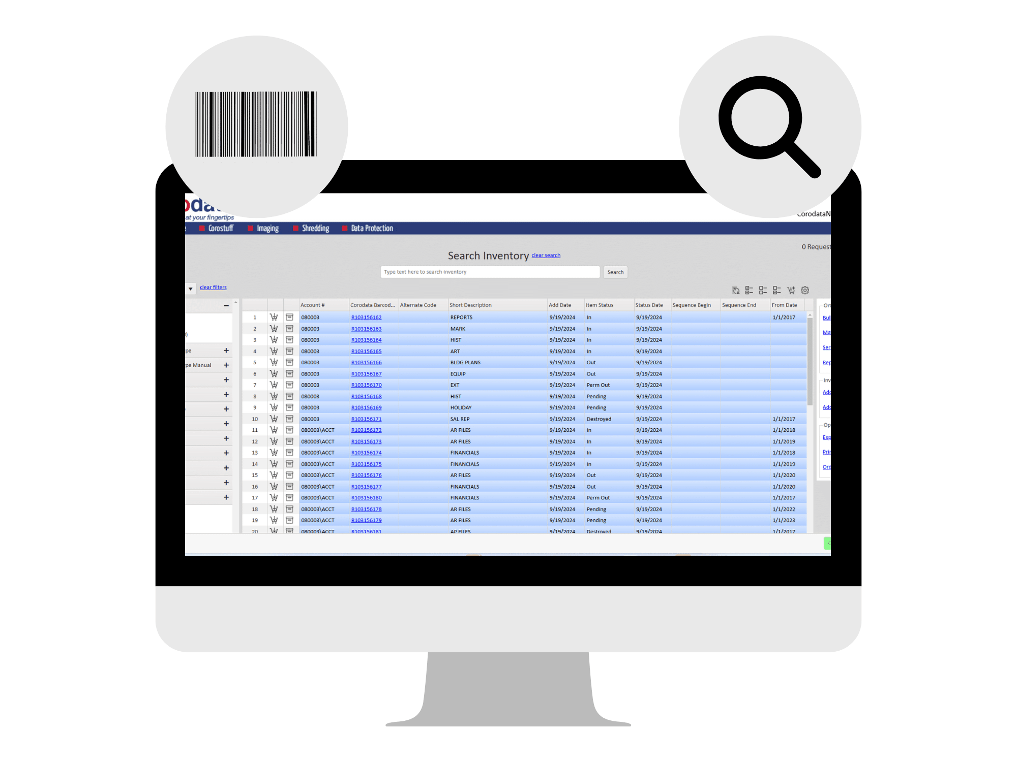 Easily manage and track your inventory online with Corodata’s secure and user-friendly Client Portal.