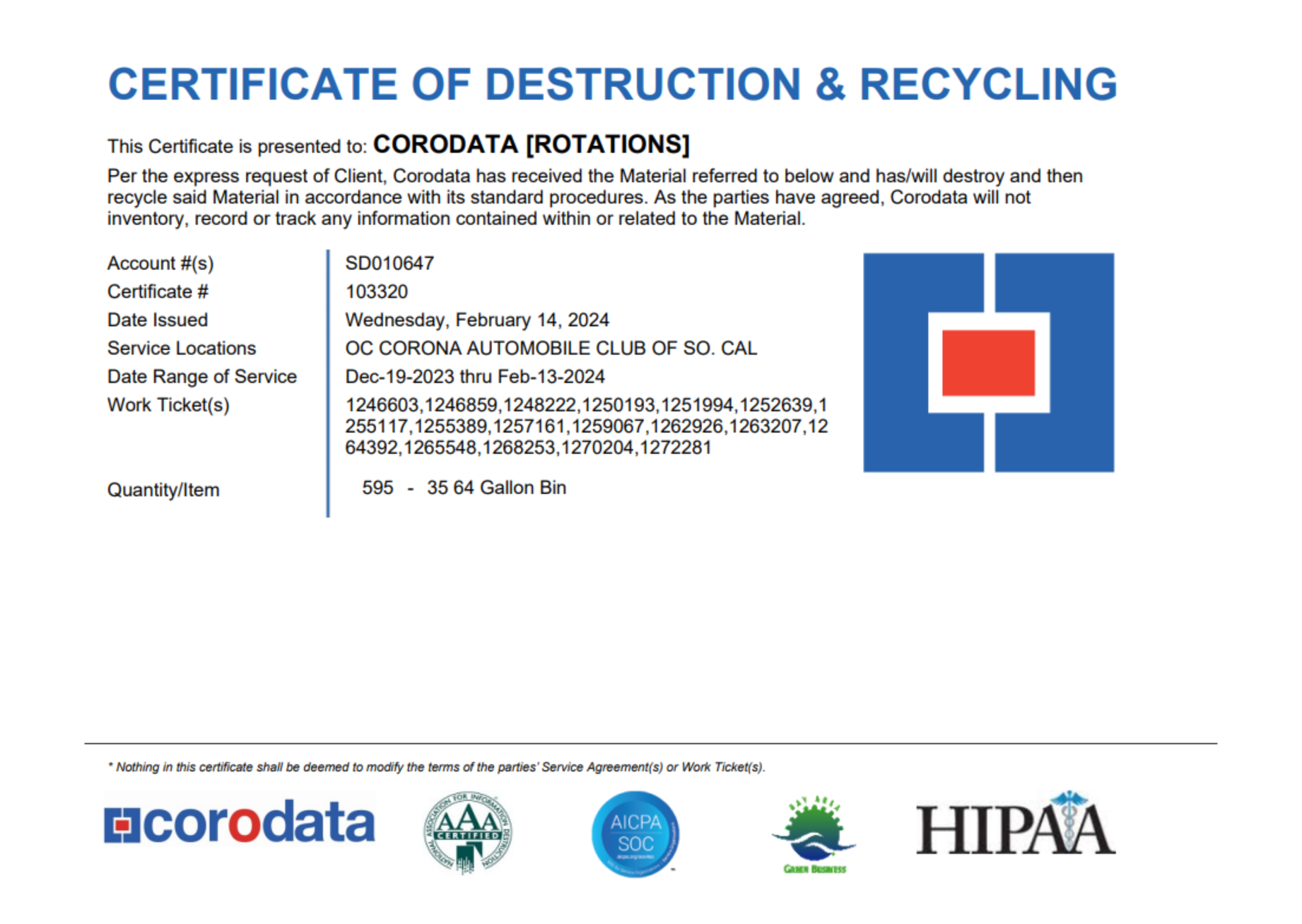 Keep your business compliant and secure with our NAID-certified paper shredding services.