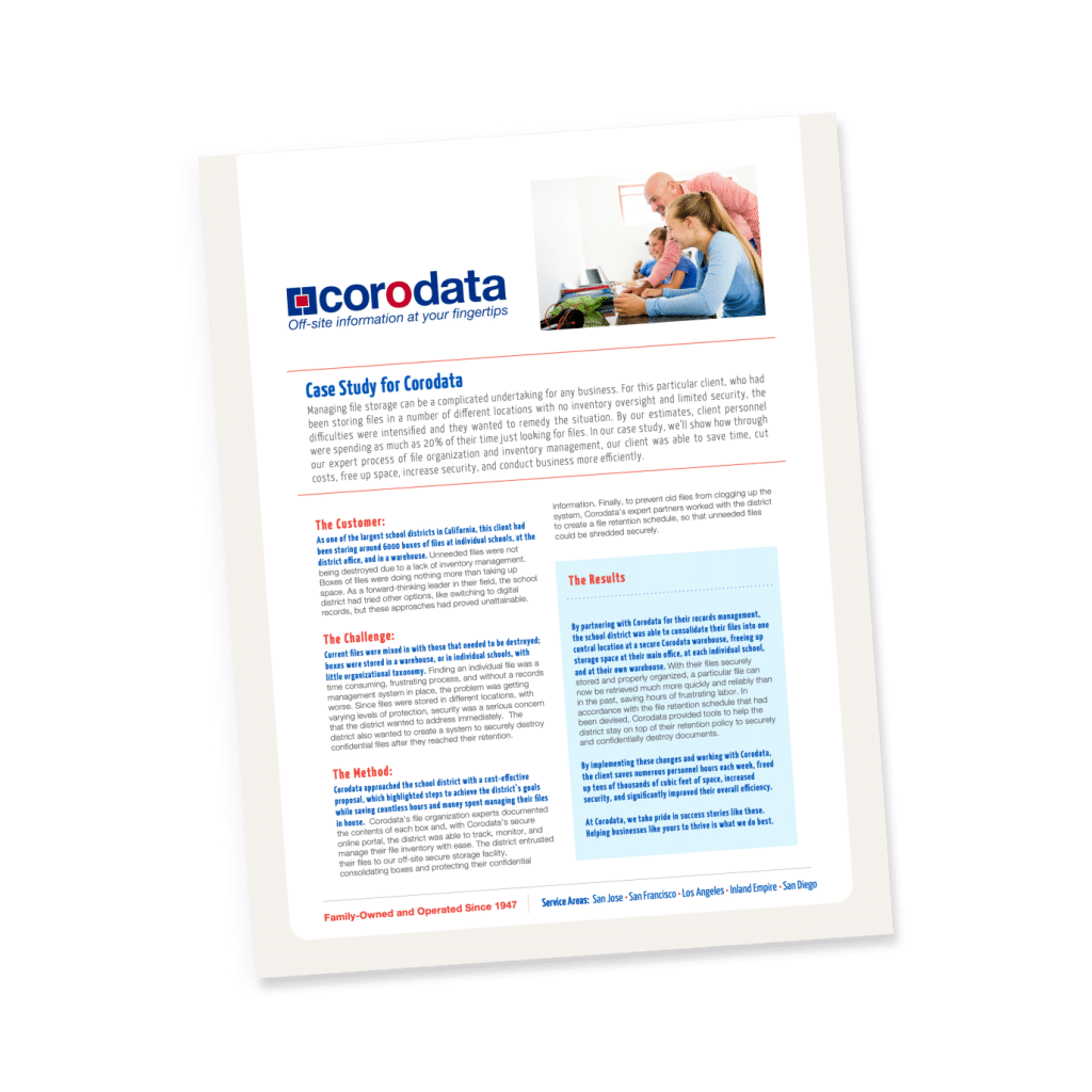See how Corodata Helped one of the largest California school districts secure their files, and manage their inventory.